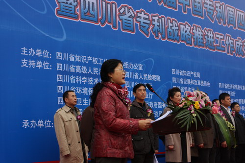 国家知识产权局文献部曾志华部长代表国家知识产权局、中国专利周组委会对四川省人民政府、省级有关部门和各市(州)知识产权局的大力支持和参与表示诚挚的谢意。曾志华部长指出,国家知识产权局已成功组织主办了五届中国专利周,初步形成了专利周全国活动的声势和品牌,有力地促进了专利技术的转化和运用,推动了国家知识产权战略的实施,对支持各地创新型省市的建设和整体推进创新型国家建设产生了重要影响。曾志华部长表示,今后,国家知识产权局将会同各部门、各地区继续把中国专利周逐年举办下去,吸引更多的发明人、创新企业、中介服务机构和社会公众参加,把中国专利周办成全国专利工作者的“盛会”,在国家知识产权战略实施和创新型国家建设过程中,与时俱进,做出新的、更大的贡献。