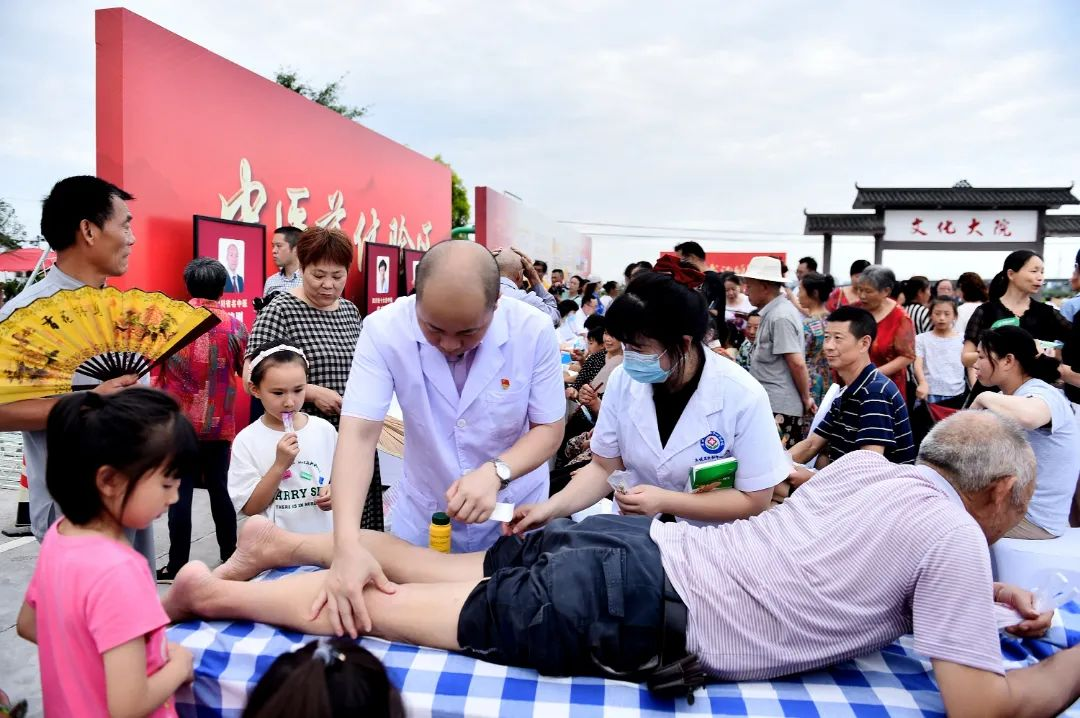 义诊现场,停满了村民的电动车,每个人脸上都洋溢着喜悦。活动邀请了儿科、内科、老年病科、推拿按摩科、皮肤科、骨科等科室的省级中医名家现场为群众义诊,不少群众搬起小板凳、依次有序排好队等着看诊。现场群众纷纷表示,名中医到家门口义诊的机会宝贵要珍惜,“这么炎热的天,他们还给我们细心看病,真是不容易,很感谢他们。”