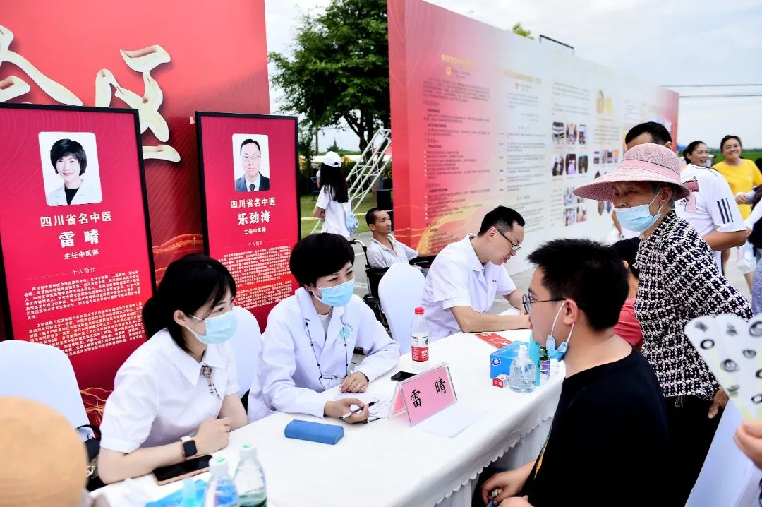 6月27日的永丰村,艳阳高照,青青的稻苗在微风中摇曳,稻田边时有疾驰而过的动车,傍晚时分,村委会广场前,15名省级名中医正在忙着为村民现场把脉问诊。刘大爷说的义诊,是“沿着总书记的足迹”——四川省中医药管理局推进党的建设暨《中医药法》实施五周年名中医川渝行活动的一部分。