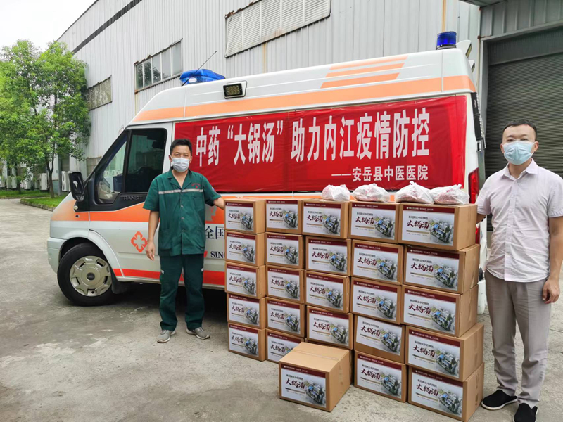当前,内江新冠肺炎疫情防控形势复杂严峻,正处于攻坚清零最关键、最紧要的时刻。按照四川省应对新型冠状病毒肺炎疫情应急指挥部《关于疫情防控中医药干预工作方案》部署要求,为切实发挥中医药对新冠肺炎预防的独特作用,结合内江市中药保障能力不足的实际,省中医药局紧急安排部署,统筹调配四川省骨科医院、西南医科大学附属中医医院、遂宁、泸州、自贡、乐山、资阳、广安等地中医医疗机构,加班加点熬制20万袋中药“大锅汤”紧急驰援内江。