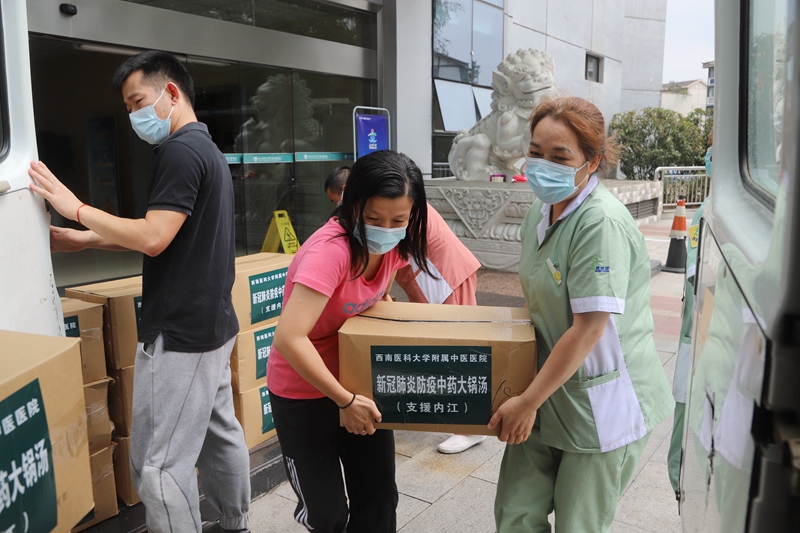 “谢谢你们!温度刚刚好,现在就可以直接喝。”9月16日晚上9点30分,内江市经开区汉渝小区张大妈一家收到一份特别的“礼物”,尚有余温的中药“大锅汤”。然而他不知道的是,2个多小时前,这袋“大锅汤”刚刚从100公里以外的西南医科大学附属中医医院熬制出锅。