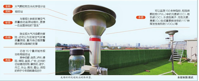 发布会上,雷毅做了一个形象的比喻。“超级站与常规6参数环境空气质量自动监测站相比,更像一名全面体检的‘医生’。”雷毅说,超级站可以监测150余种指标,其中,包括细颗粒物(PM2.5)中的元素碳(EC)、有机碳(OC)、水溶性离子、无机元素,臭氧(O3)生成重要前体物的117种挥发性有机物(VOCs)等。“能将大气污染的病因查清楚、说明白。”雷毅说。