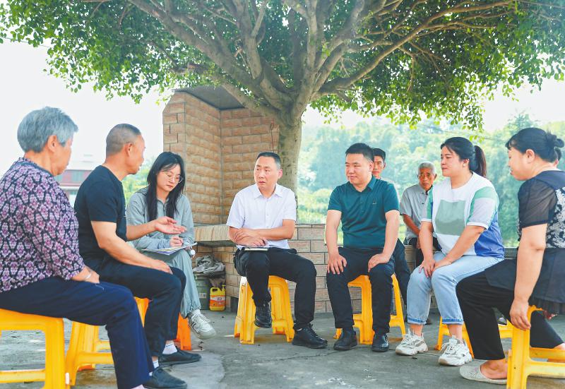 广安华蓥市庆华镇的法律顾问带着参加实训的“法律明白人”,在铜鼓寨村的农家现场调查了解因土地租赁引发的纠纷案,并宣讲相关法治知识。邱海鹰 摄