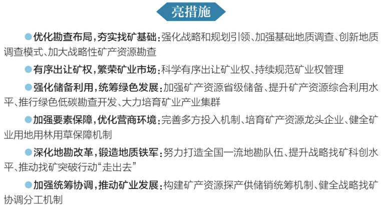 “下一步将在引导矿山企业提升开采回采率、选矿回收率和综合利用率,实现矿产资源节约集约利用的同时,着力开展钒钛磁铁矿有价元素高效分离、钛(金红石)选冶、深部卤水锂钾提取、稀土矿伴生元素分离、中低品位磷矿资源浮选及磷钾分离综合利用等关键技术攻关,提升矿产资源综合利用水平。”自然资源厅相关负责人说。(记者 王若晔)