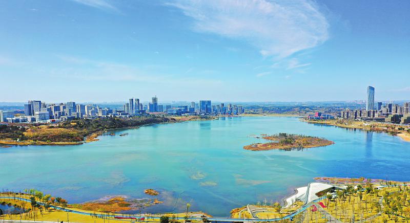 在天府新区拍摄的兴隆湖。(2023年摄,资料照片)新华社发(周勇良 摄)