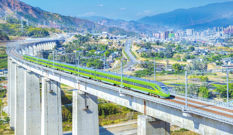 新成昆铁路上,动车飞驰过攀西高原。攀枝花市委宣传部供图