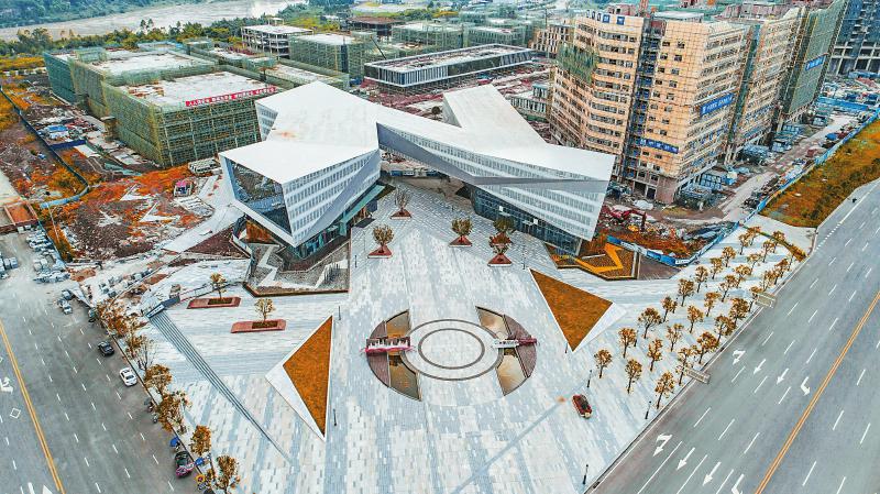 10月12日,位于广安城东的广安(深圳)产业园基础性项目——深广·渠江云谷施工现场,工人们正进行幕墙、景观等工程施工。园区尚未完成,一批巨头已迫不及待宣布入驻,包括比亚迪千亿级云轨项目、赛迪研究院高端智能电子园等。
