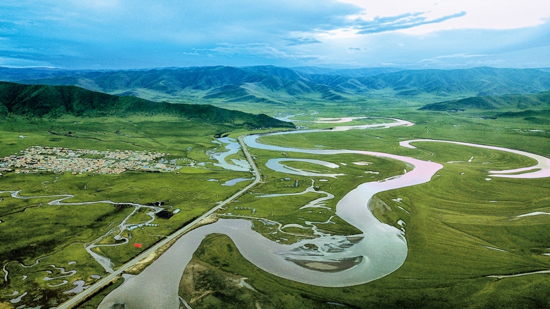 四川是中华民族母亲河黄河上游重要的水源涵养地、补给地和国家重要湿地生态功能区,是“中华水塔”的重要组成部分。图为2018年7月24日,嘎曲河在阿坝州大草原上划出一道道舒缓优美的弧线。记者何海洋/摄