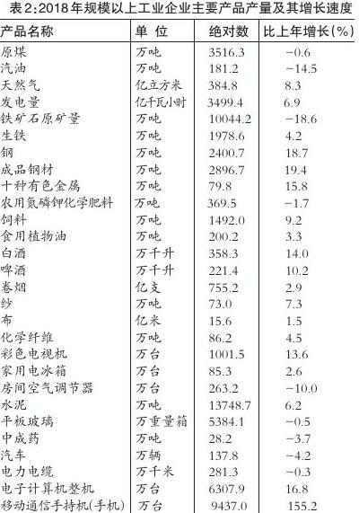 从主要产品产量看,原煤产量比上年下降0.6%,汽油下降14.5%,天然气增长8.3%,发电量增长6.9%,铁矿石原矿量下降18.6%,成品钢材增长19.4%,水泥增长6.2%,白酒增长14.0%,汽车下降4.2%,电力电缆下降0.3%,电子计算机整机增长16.8%。全年规模以上工业企业产销率为98.1%。