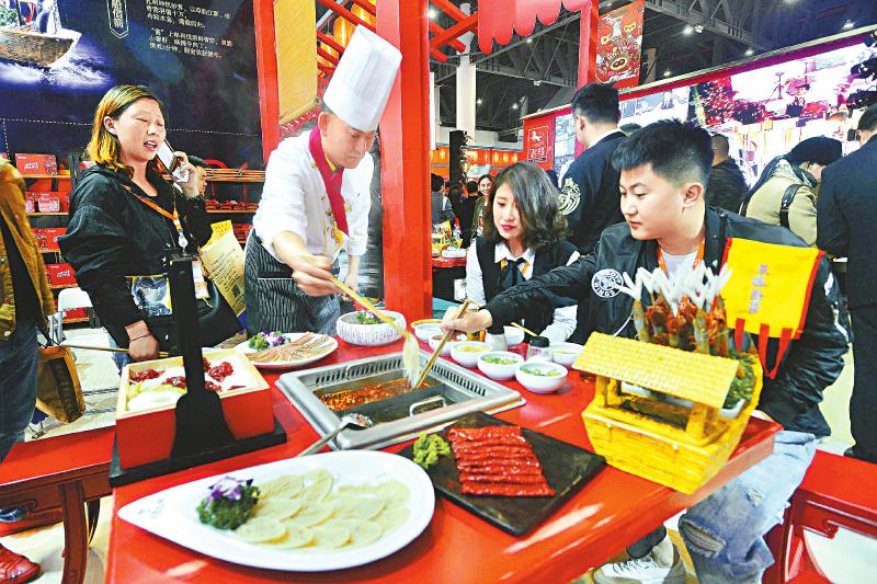 3月21日,第100届全国糖酒商品交易会在成都中国西部国际博览城举行。首次设立的火锅体验厅聚集了国内多家火锅行业的龙头厂家。(记者 华小峰摄)(视觉四川)