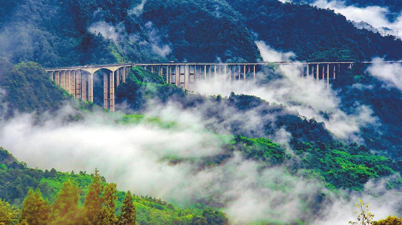 在雅安市荥经县,穿梭于云雾之间的雅西高速蔚为壮观。黄刚摄(视觉四川资料图片)