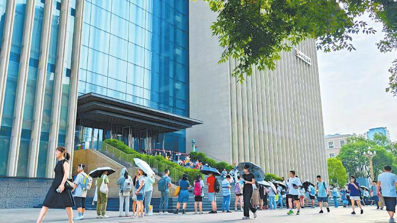 在四川,备受追捧的图书馆还有不少。2015年底,四川省图书馆现馆舍开馆,目前已运行服务近8年,年均接待读者190余万人次,日均最高达到1.5万人次。“只好在阅览室等空间增加座席数,将部分藏书空间让给读者。”四川省图书馆相关负责人说。
