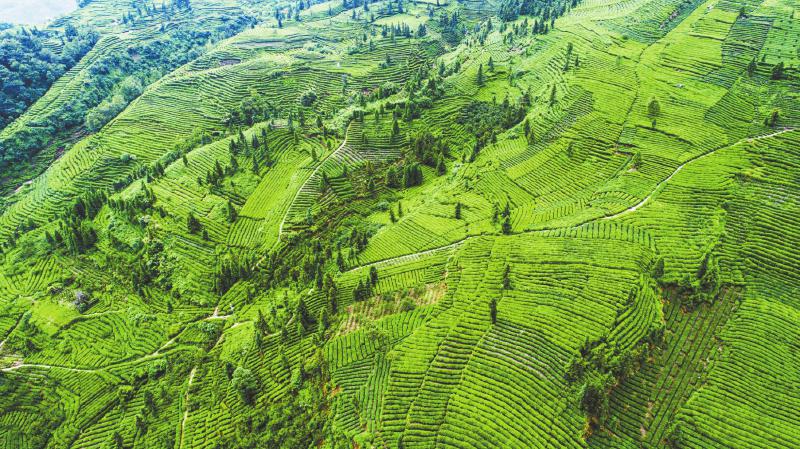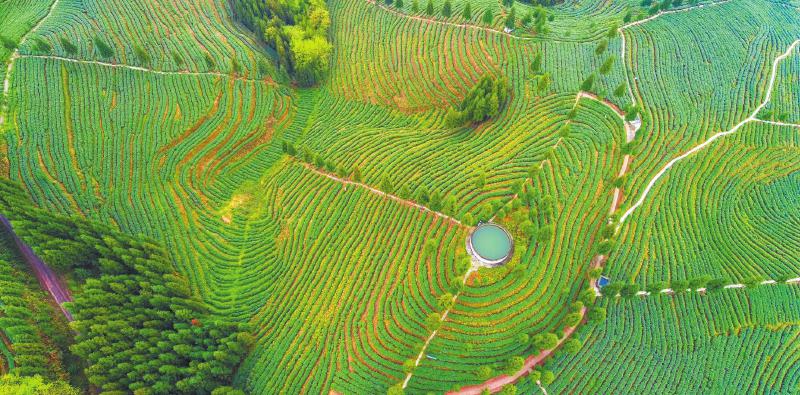 俯瞰泸州市纳溪区梅岭村万亩茶园。