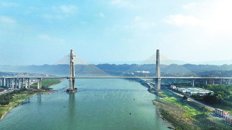 1月5日,航拍川南城际铁路自宜线宜宾临港公铁两用长江大桥建设一景。兰锋 摄(视觉四川)