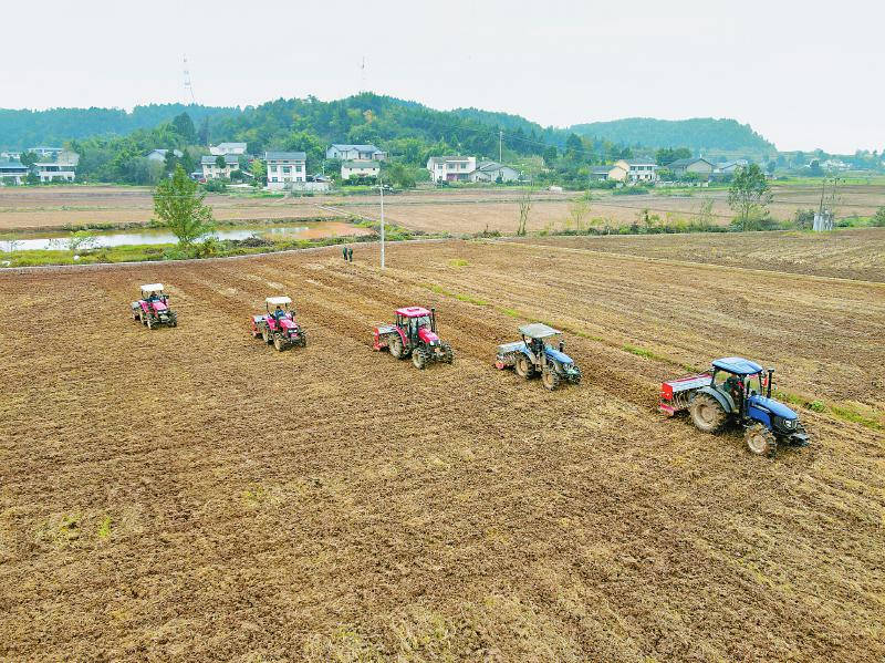 忠兴镇土地大托管服务中心正进行土地集中翻耕。绵阳市游仙区忠兴镇木龙村供图