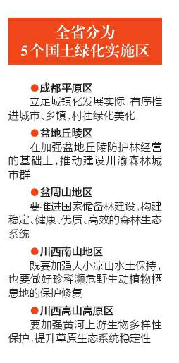 作为全国首批7个科学绿化试点示范省之一,四川把全省划分为5个国土绿化实施区,提出7项具体实施任务,计划打造10个示范项目,并推出一系列支持、保障政策。