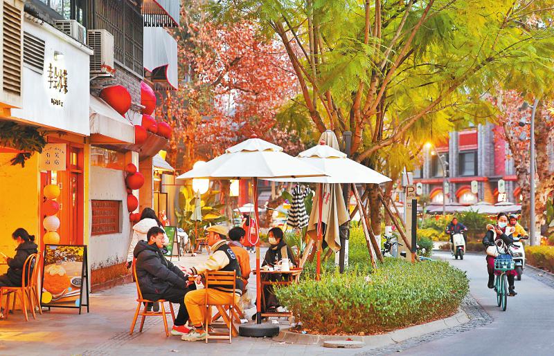 市民在成都市大学路街区感受“成都式”的安逸和日常。
