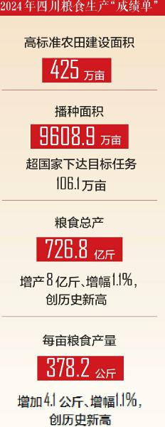 新的谋划已经开启。农业农村厅介绍,新的一年,聚焦“天府粮仓”建设中期目标,四川将以大面积单产提升为主线,以科技入户到田为牵引,进一步细化实化工作举措。在此基础上,力争2025年全省粮食单产再提升,确保总产再增5亿斤以上。