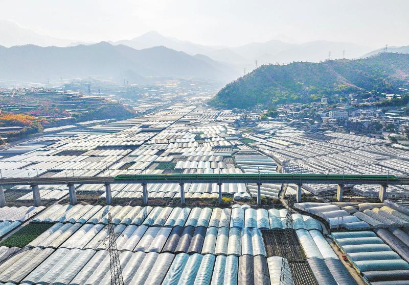 2月6日,“绿巨人”动车组穿过安宁河流域的米易县共富农场。记者 何海洋 摄