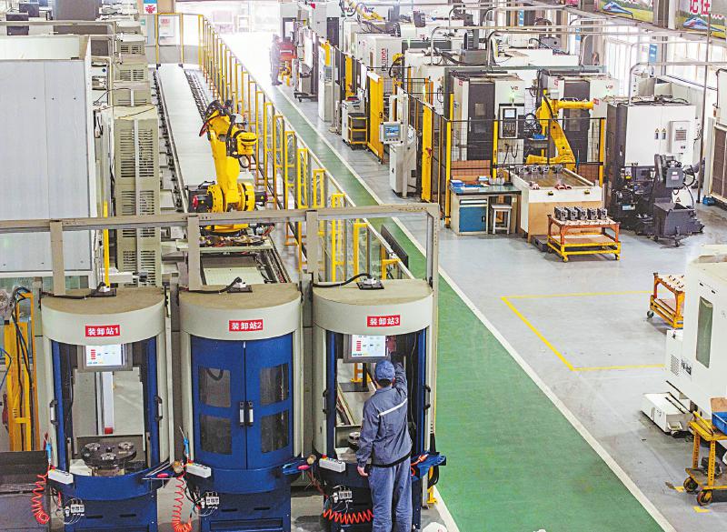 4月16日,眉山中车制动科技股份有限公司,铝合金产品智能生产线上的智能机械臂正在加工零件,该生产线在机械加工领域智能化方面属于国内领先水平。
