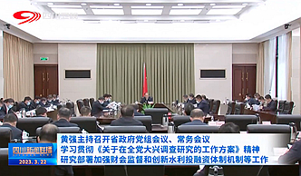 3月21日,省委副书记、省长、省政府党组书记黄强主持召开省政府党组会议、常务会议,传达学习中共中央办公厅印发的《关于在全党大兴调查研究的工作方案》精神,研究部署省政府贯彻落实措施和加强财会监督、创新水利投融资体制机制等工作。