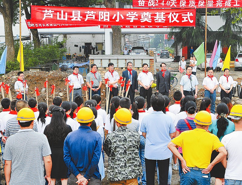 4·20”芦山强烈地震后,台湾同胞纷纷捐款捐物予以关心援助。全省共接受台湾各界援助资金4.4亿元人民币,捐赠物资折合人民币约3000万元。落实援建项目44个,目前全部顺利开工建设。图为台湾长荣集团援建芦山县芦阳小学项目开工。