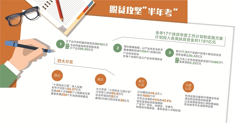 强化政策落实,上半年,我省扎实推进17个扶贫年度计划。省直有关部门制定并实施了17个扶贫年度工作计划和实施方案,计划投入各类扶贫资金共1181亿元。