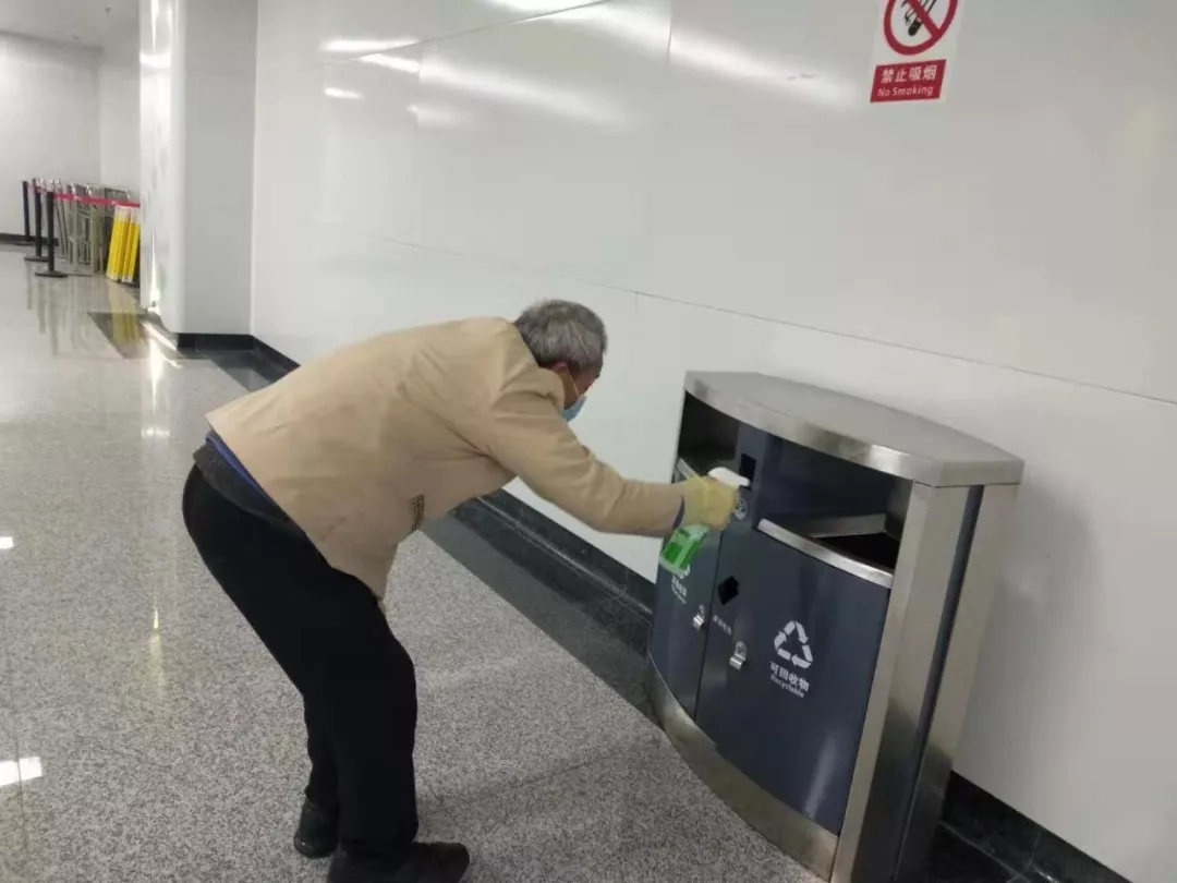 针对车站,全线网237座车站通风系统以最高等级全程开启,每日定时对卫生间、扶手、闸机、垃圾桶等重点部位进行清洁消毒,持续供应车站卫生间“两纸一液”,供乘客使用。