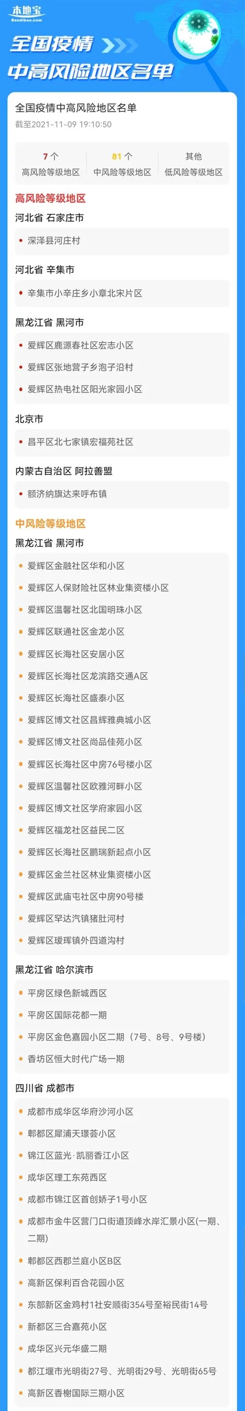 截至11月9日19时,我国有7个高风险地区和81个中风险地区。