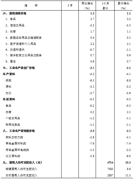 一季度,居民人均可支配收入4714元,同比增长10.3%,增幅比全国平均水平高0.9个百分点,城镇居民人均可支配收入7083元,同比增长8.6%,增幅比全国平均水平高0.3个百分点。农村居民人均可支配收入2887元,增长11.3%,增幅比全国平均水平高1.3个百分点。