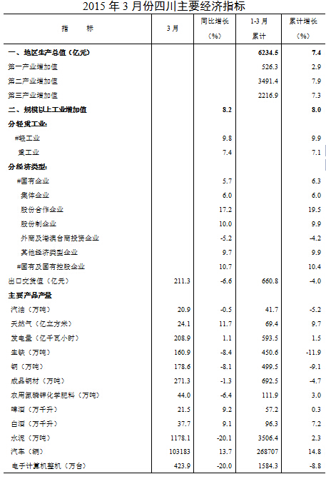 2015年4月17日,四川省人民政府新闻办公室召开2015年一季度四川经济形势新闻发布会。四川省统计局新闻发言人熊建中作新闻发布,全文如下: