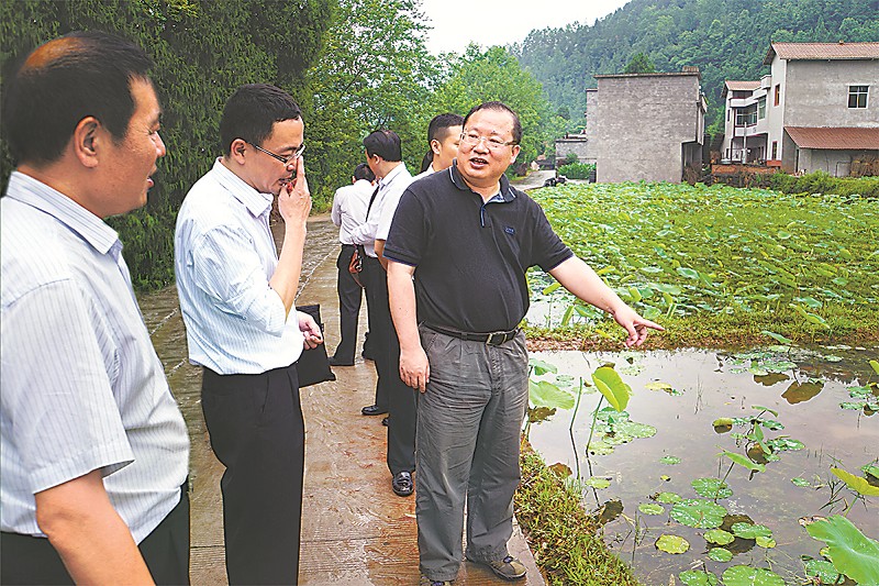 中国银行四川省分行负责人查看巴州区枣林镇清溪沟莲藕种植园地。