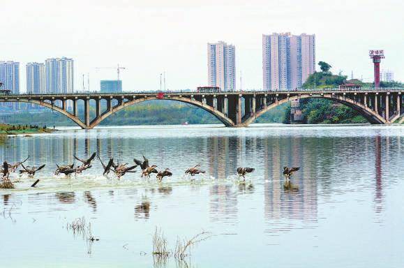 正如尹忠所言,如今的沱江河,水清、岸绿,大雁的放飞,引来了无数的红嘴鸥、灰嘴鸥、野鸭等野生动物的回归。雁城雁归来!