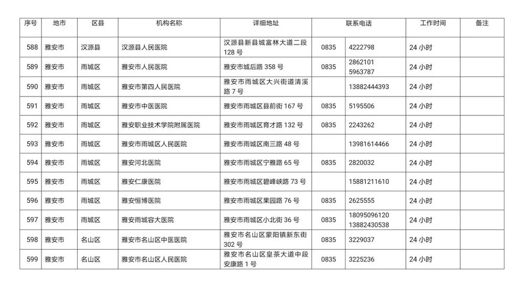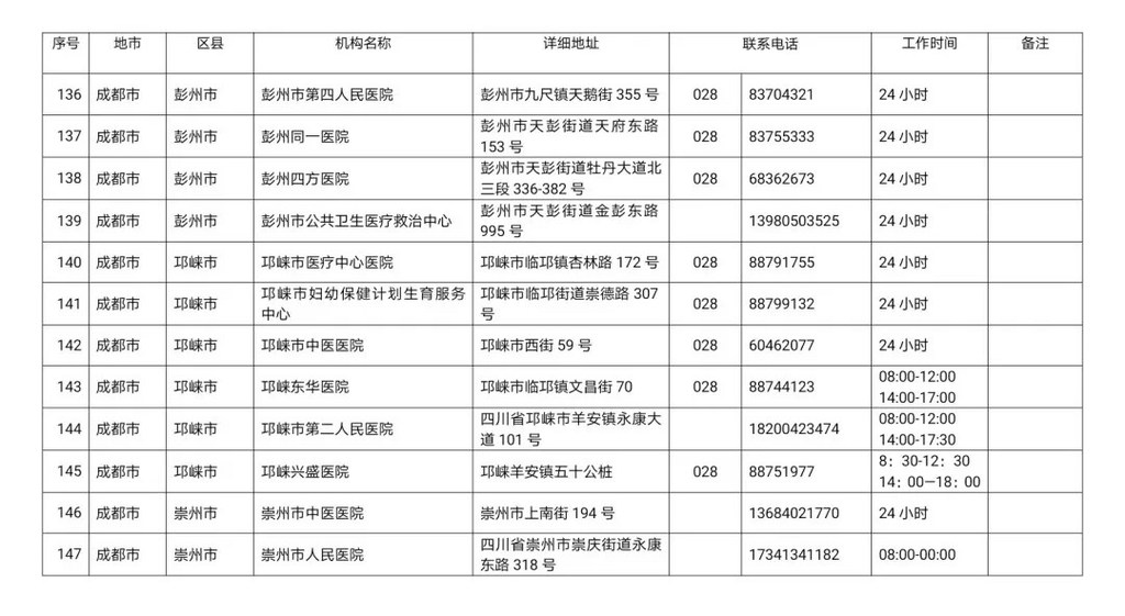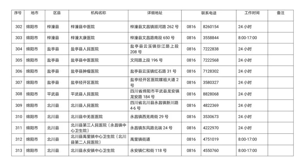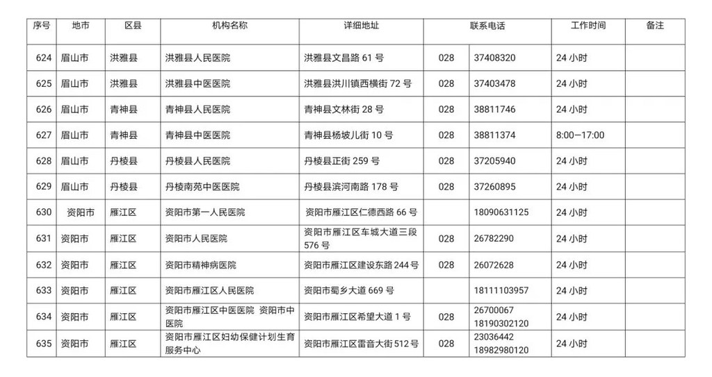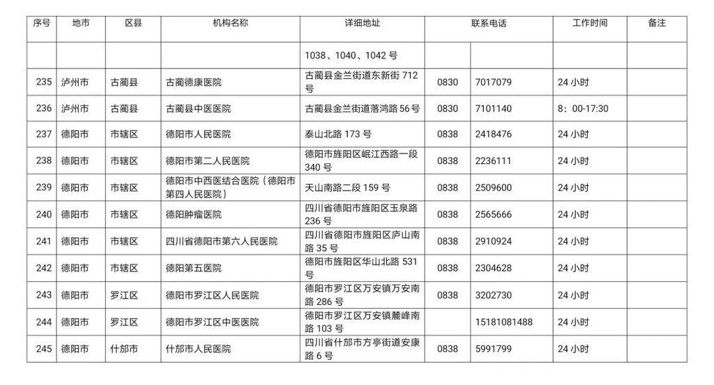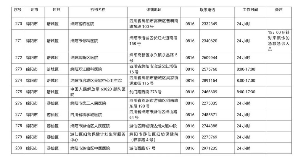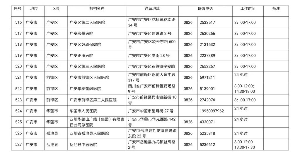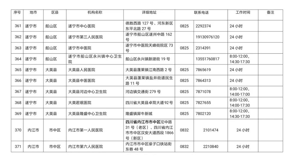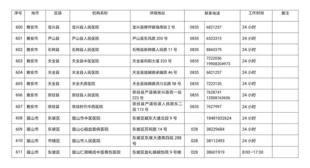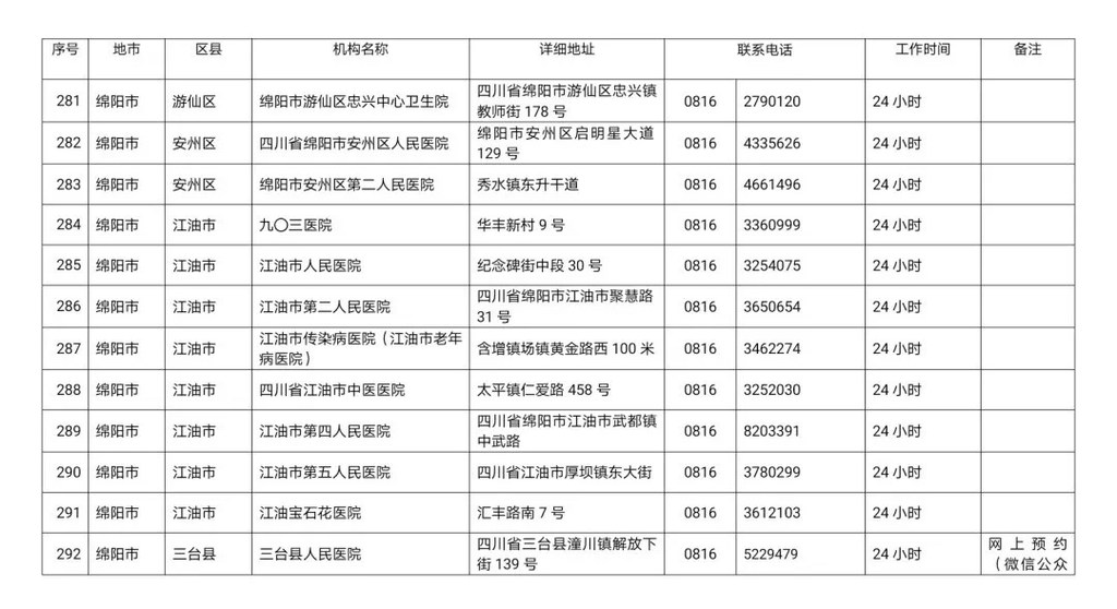 四川省新冠病毒核酸检测医疗机构名单