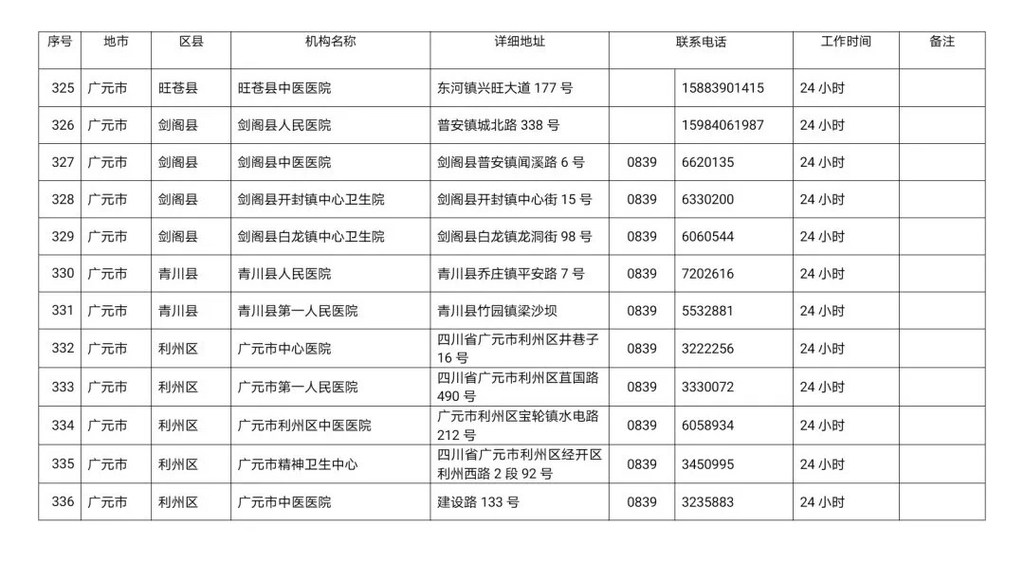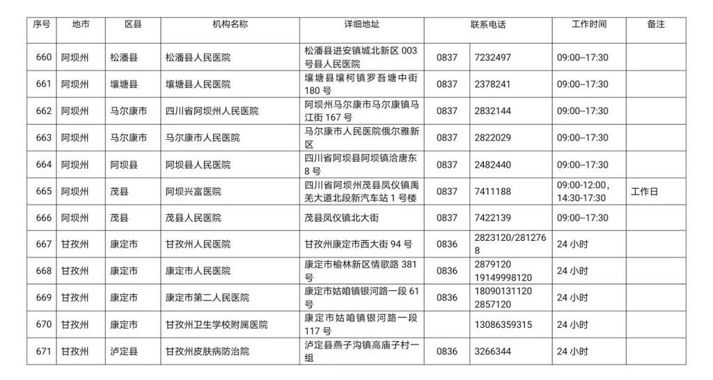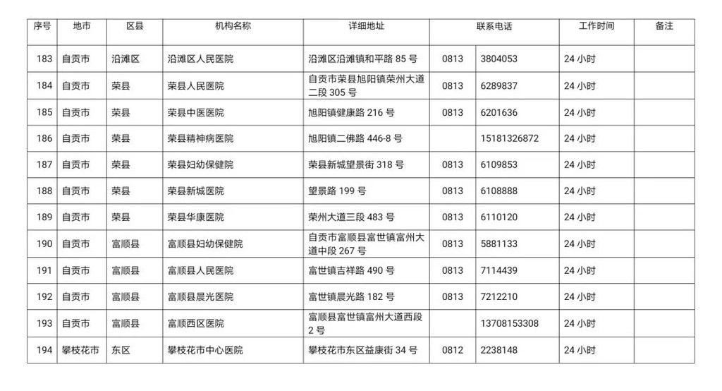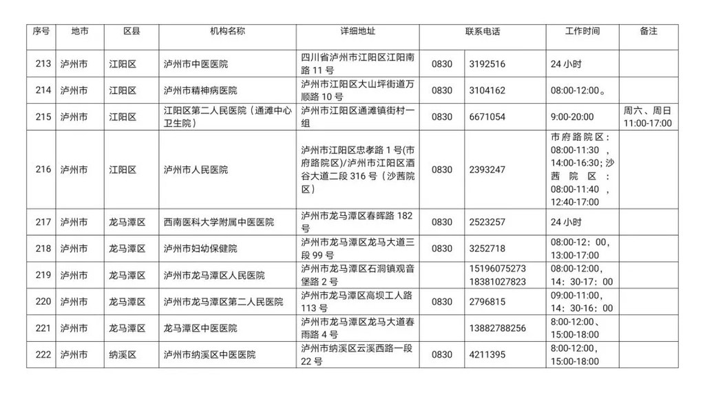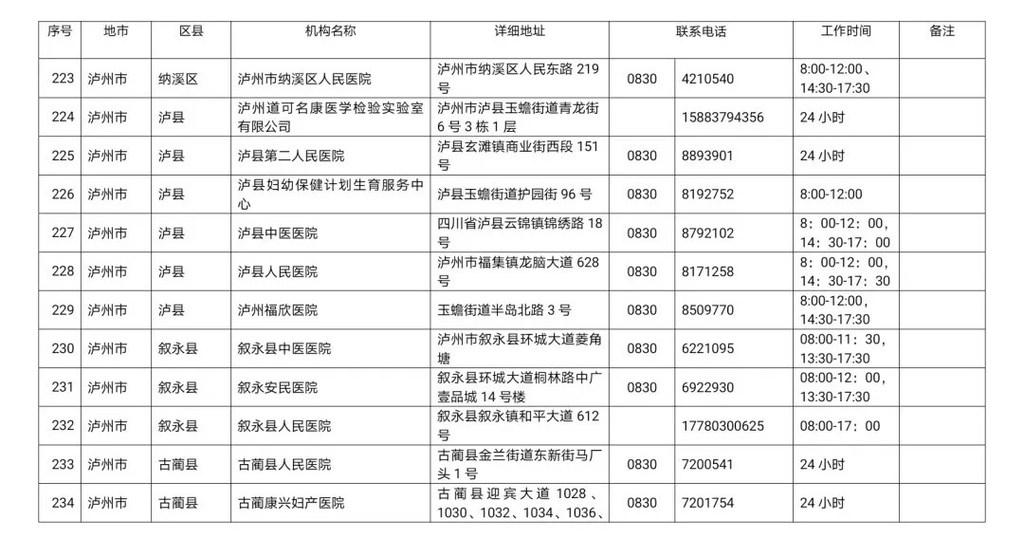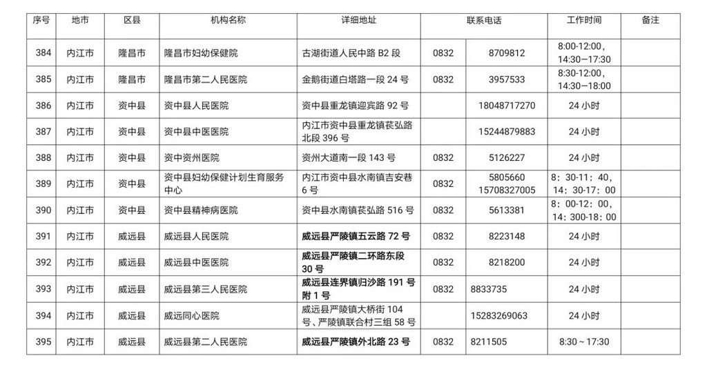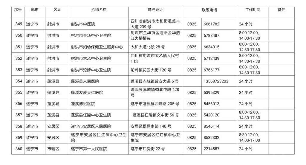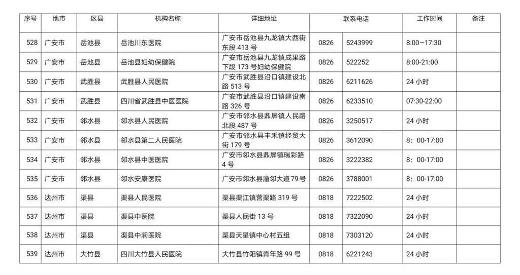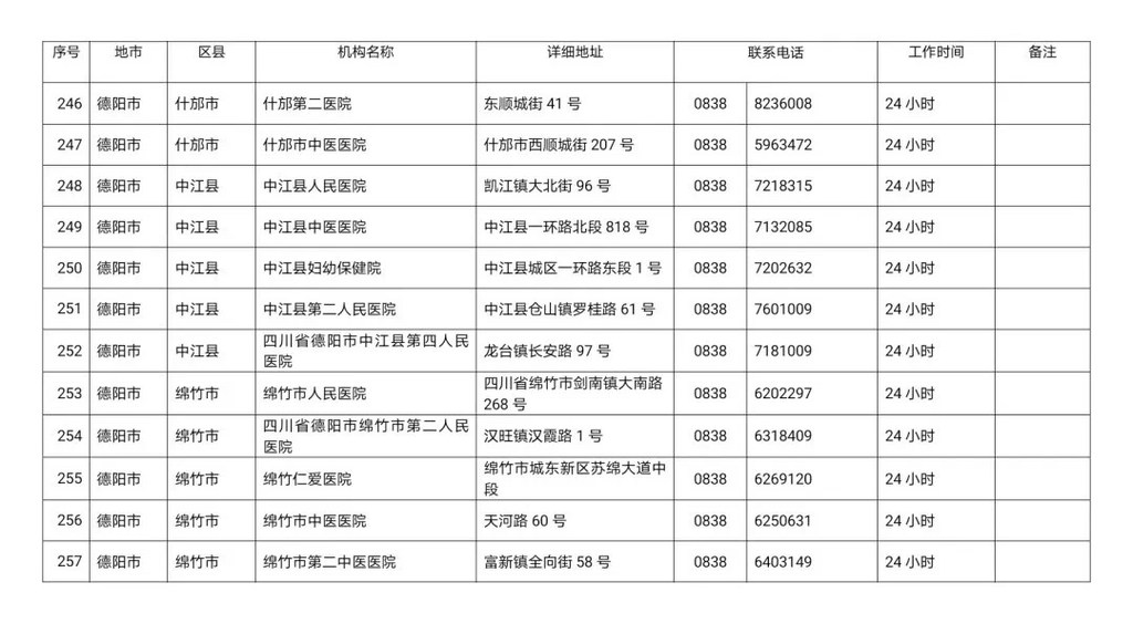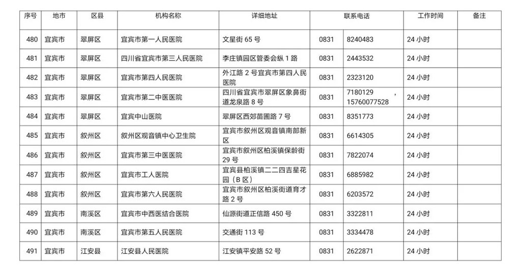 四川省新冠病毒核酸检测医疗机构名单