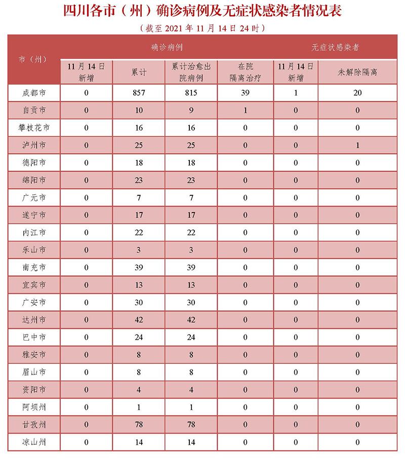 四川省新型冠状病毒肺炎疫情最新情况(11月15日发布)