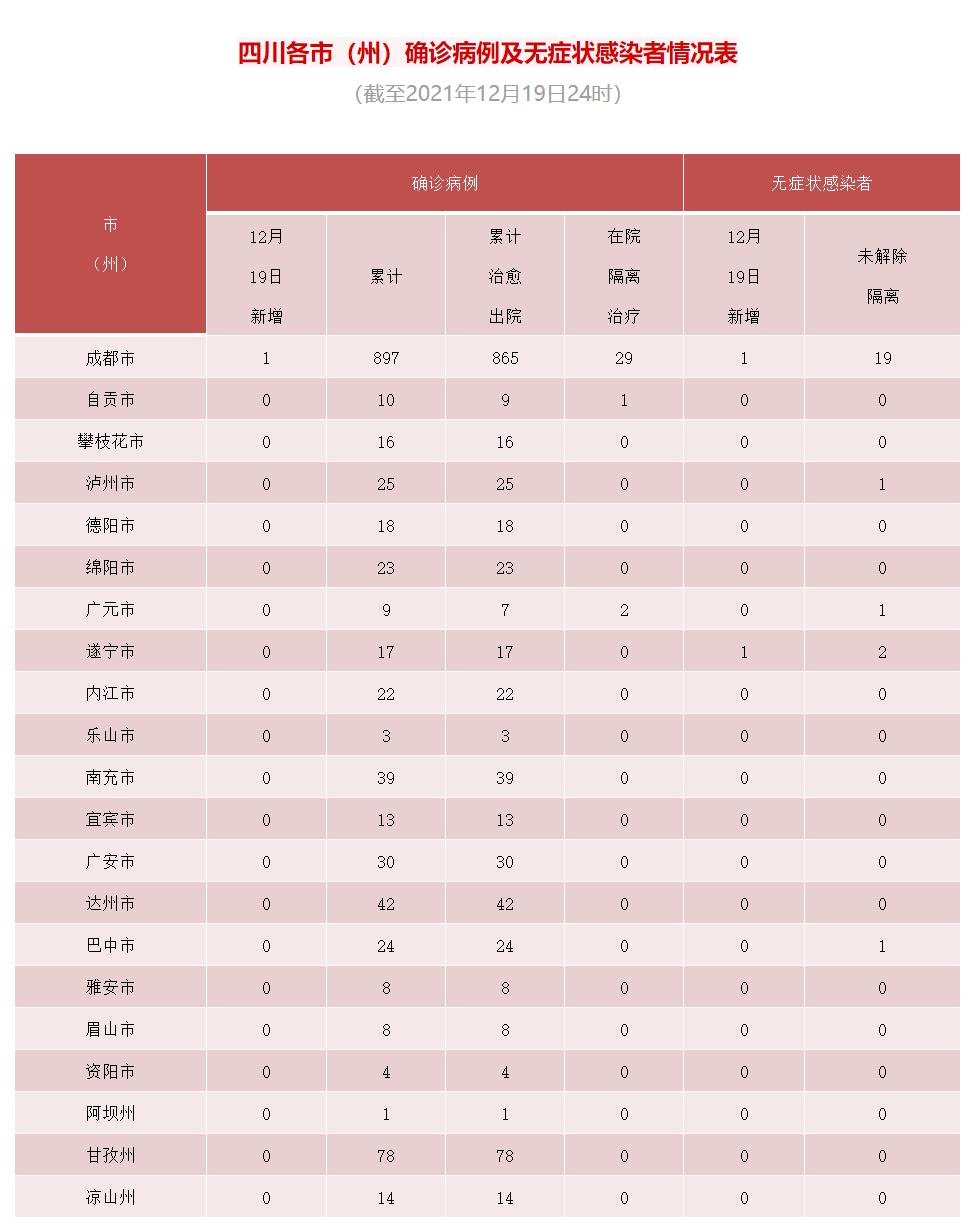 四川省新型冠状病毒肺炎疫情最新情况(12月20日发布)