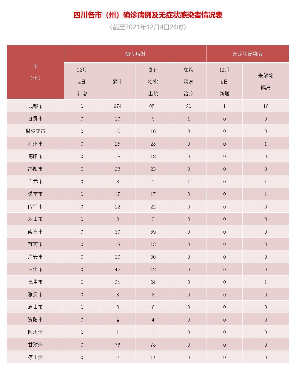 四川省新型冠状病毒肺炎疫情最新情况(12月5日发布)