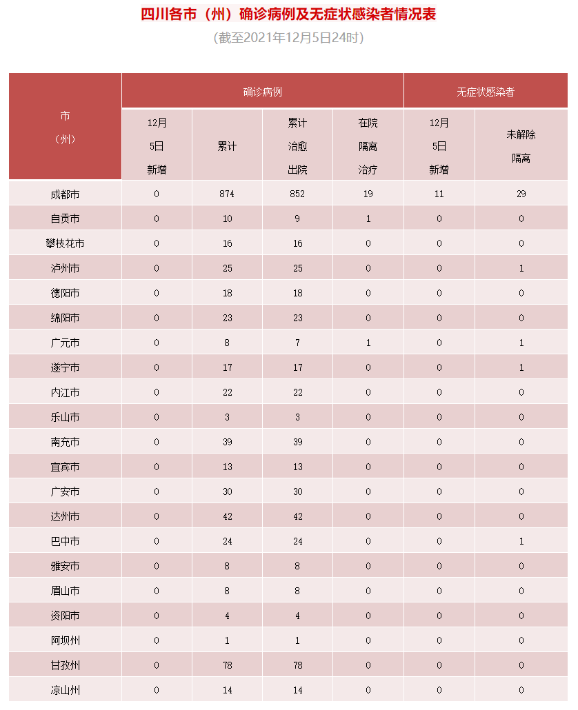 四川省新型冠状病毒肺炎疫情最新情况(12月6日发布)