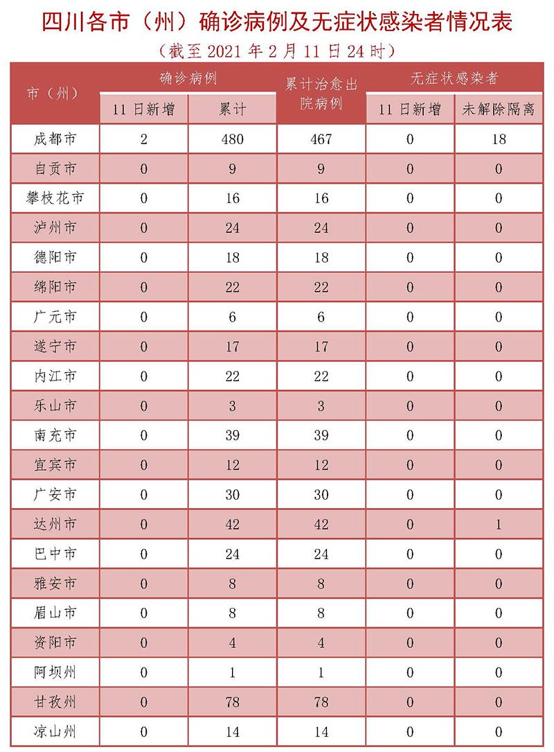 四川省新型冠状病毒肺炎疫情最新情况(2月12日发布)