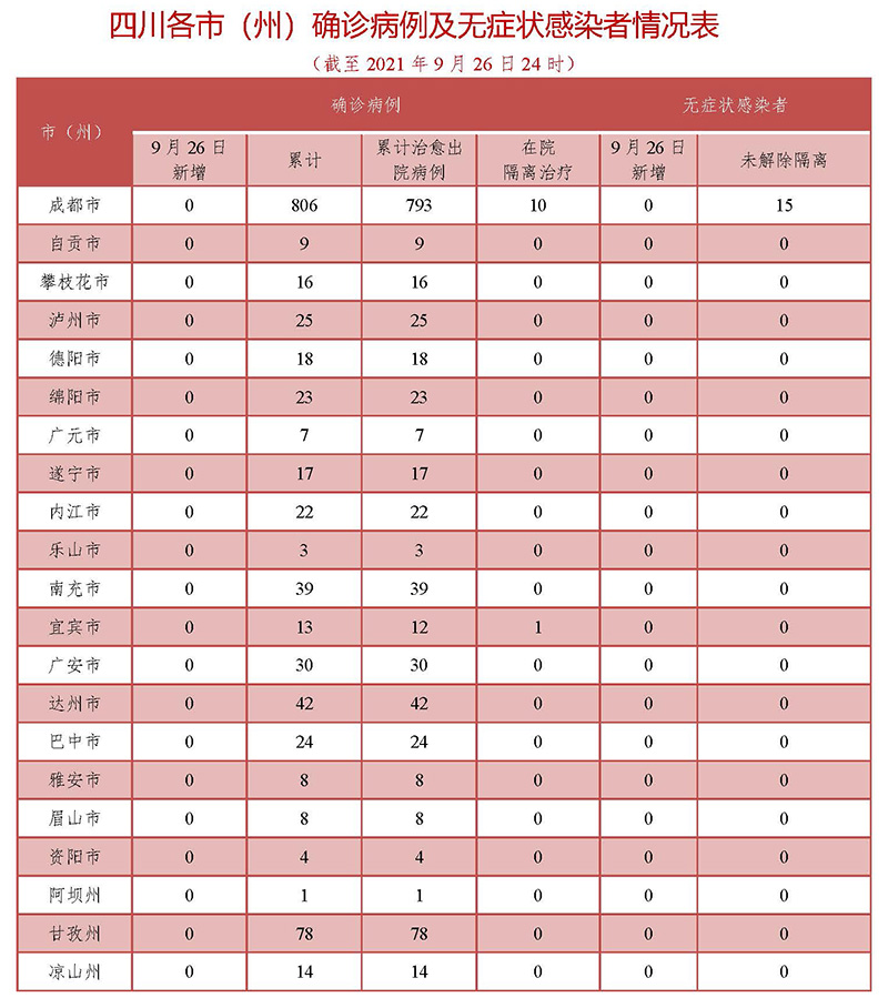 四川省新型冠状病毒肺炎疫情最新情况(9月27日发布)