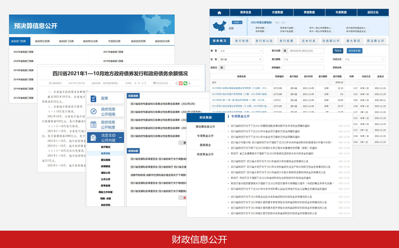 推进财政信息公开。常态化公开并动态调整四川省行政事业性收费目录清单。其中集中公开116个省直部门(单位)和874个省级预算单位的预决算信息,及时公开地方政府债券10批次发行的相关信息。公开76项财政专项资金安排情况,涉及资金1300亿元。