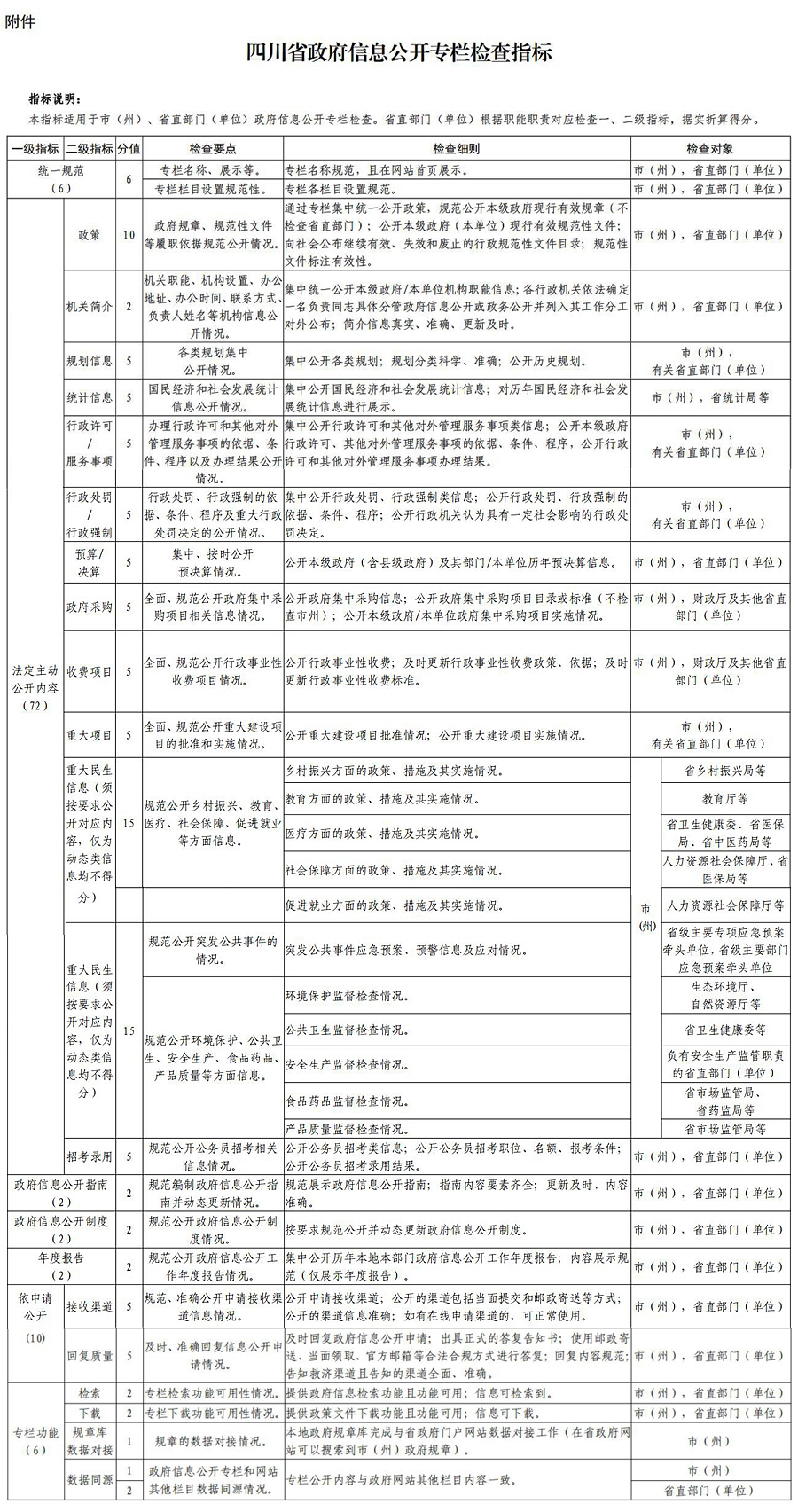 附件:四川省政府信息公开专栏检查指标