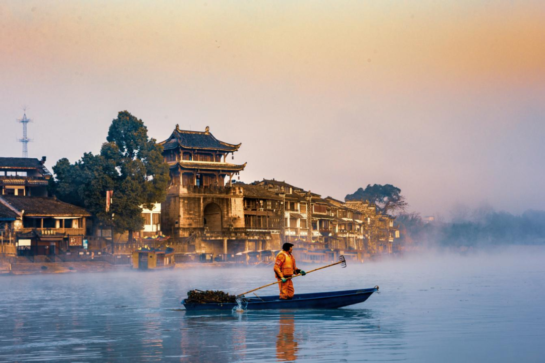 我最得意的一张摄影作品,拍摄地点就在黄龙溪古镇的老码头对岸。那是2018年冬天,清晨的薄雾还在江面上弥漫,一位身着制服的河段巡逻员,驾船缓缓前行,默默守护着我们的母亲河,我把这张照片也命名为“锦江美容师”。