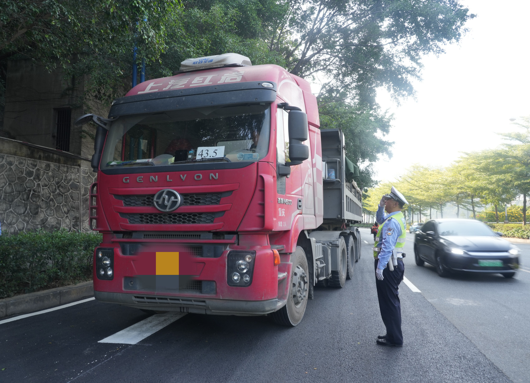 接到投诉信访件后,攀枝花市公安局交警支队采取“三线并行”开展行动。首先,是开展现场核查,该支队二大队连续多日对金沙江大道中段进行实地踏勘。现场记者看到,该路段确有货运车辆夜间通行情况,民警对未办理通行证车辆进行了现场处罚,处罚内容为记1分,罚款100元。民警介绍:“今年以来,针对相关情况,我们在金沙江大道中段已处罚67台车辆。”