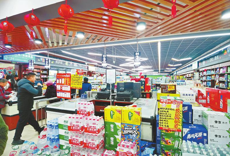 1月27日,安居区城区以北5公里外的东禅镇又迎来赶场日。龙年春节进入倒计时,返乡过年的人陆续多起来。惠佳作为这个场镇上最大的超市,也提前铺开了各种年货促销活动。