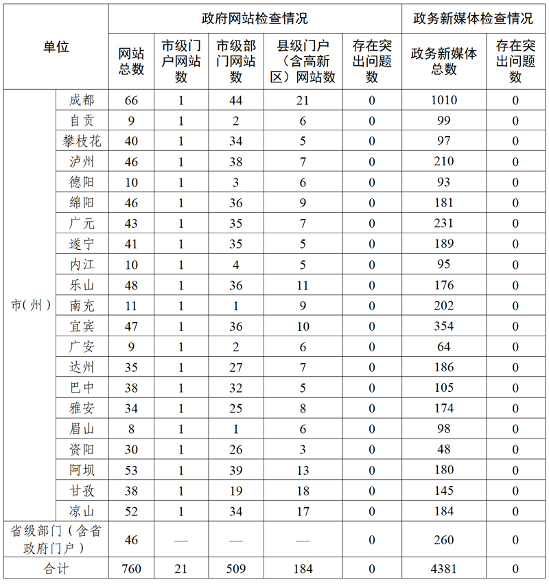 四川省人民政府办公厅关于2024年上半年政府网站与政务新媒体检查情况的通报