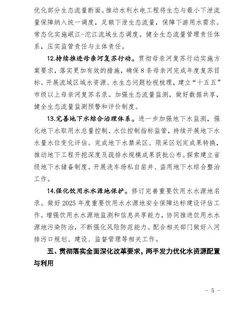 为贯彻落实水利厅党组关于推动水利高质量发展的安排部署和2025年全省水利工作会议精神,切实做好2025年水资源管理、节约用水、调水管理工作,水利厅制定了《2025年四川省水资源“三个服务”重点工作安排》,现印发你们,请结合实际抓好落实。