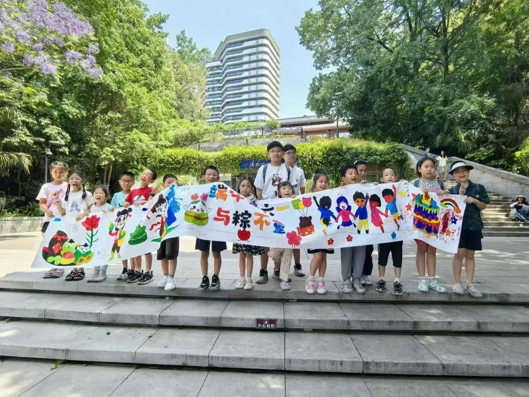 参观结束后,孩子和家长们共同参与到长卷绘画环节。5米长的画卷巧妙地将水生态保护与端午、六一节日文化相融合,孩子们用五彩的画笔描绘出对节日的祝福与生态愿景,形成了一幅颇具童趣的绘画作品。