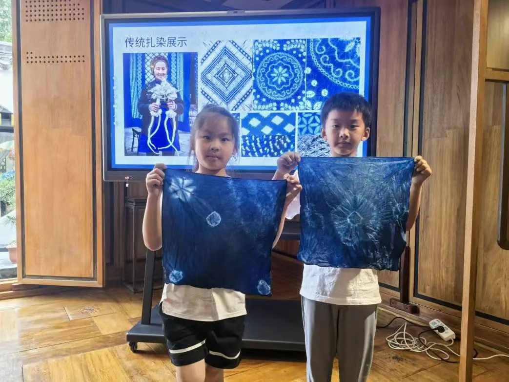 有家长感慨:“扎染的每一步都要耐心,就像保护河湖需要持之以恒。这不仅是一次手工课,更是把人与自然和谐共生的种子扎进了心里。”